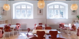 Así, se han introducido grandes paneles fonoabsorbentes en los techos, lo que ha permitido reducir la reverberación de los espacios, se ha sustituido la iluminación por una luz más cálida y acogedora y se han redistribuido los espacios y recorridos de los usuarios (alumnos, monitoras, docentes, etc...). Asimismo, se ha renovado todo el mobiliario, con mesas y sillas y se ha actualizado el menaje para cocinar, comer y beber.