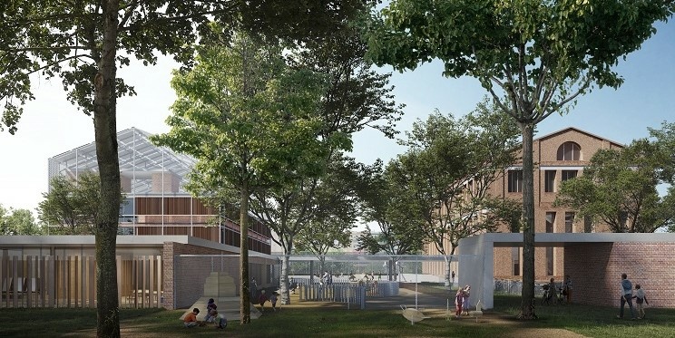 El proyecto arquitectónico ganador, “Face to face”, prevé rehabilitar y adecuar la nave de la antigua fábrica textil y, justo al lado, unido por un porche de conexión, construir todo un edificio nuevo, que tiene una configuración arquitectónica muy similar, todo el conjunto llevará ya integrado el Plan Clima Escola Barcelona.